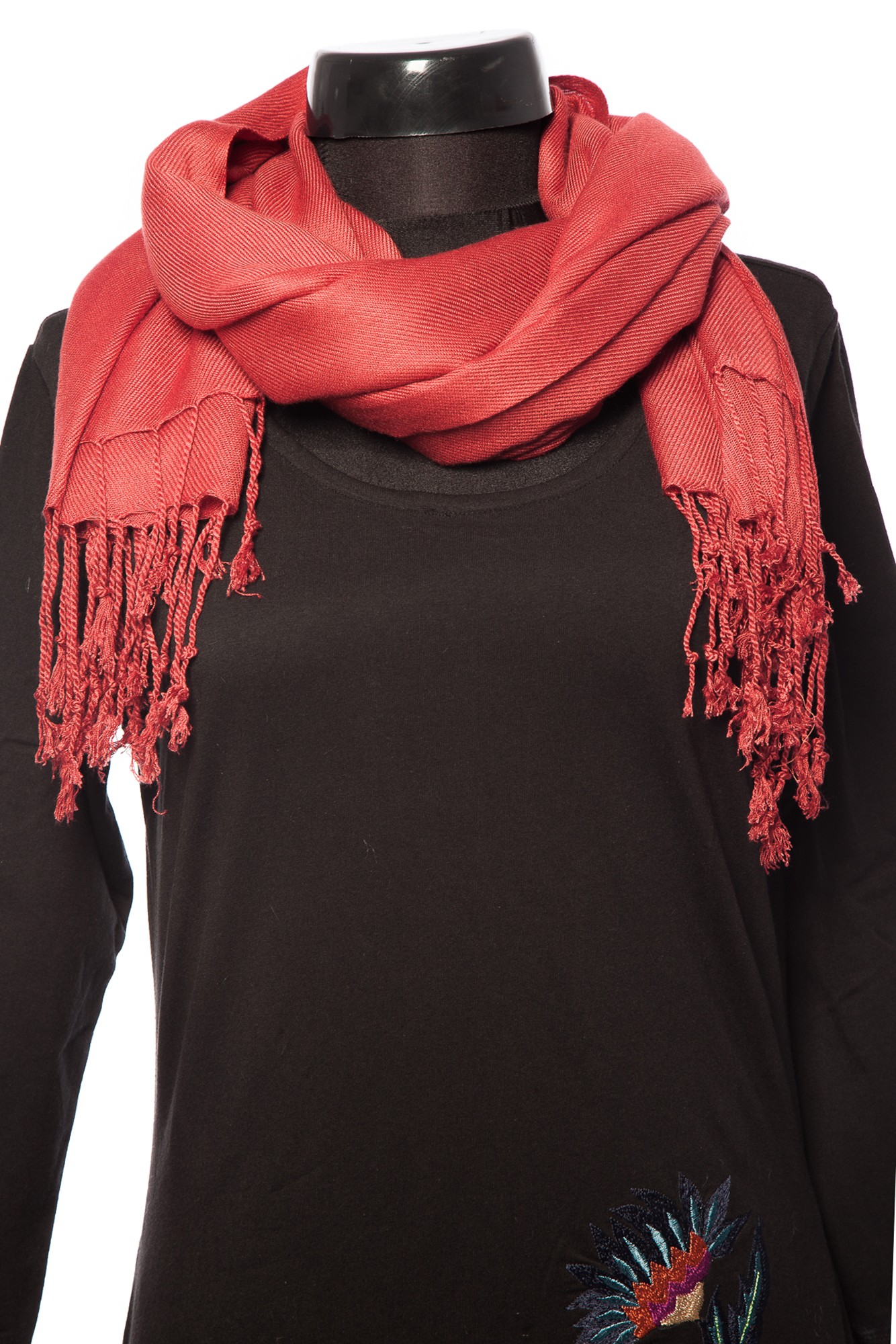 - esarfa caramizie groasa din vascoza dreptunghiulara cu urmatoarele dimensiuni: 70cm x 104 cm